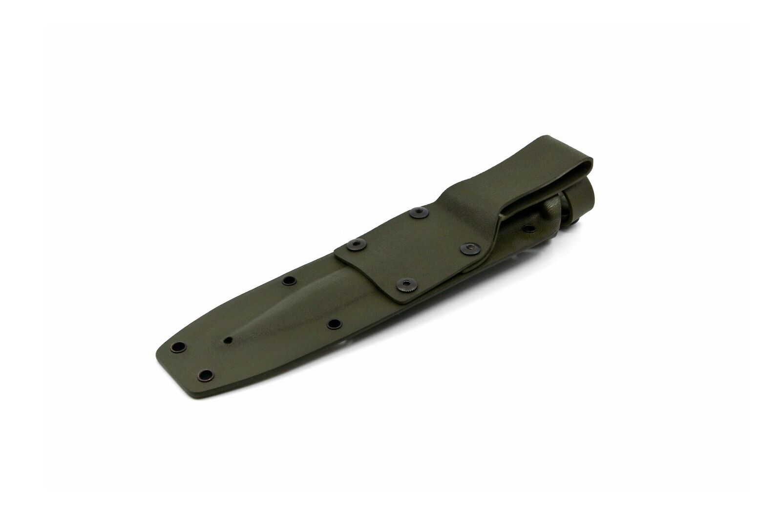 Given the tactical nature of the unit’s operations, we have added features to the knife to make it suitable for emergency use, such as a glass breaker with a hole and two additional holes on the guard to allow, in case of emergency, the attachment of the knife to other equipment. The blade is sharpened one side and a dull the other.