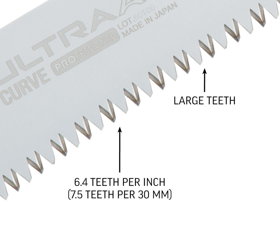 The curved blade design enhances control during cutting, making it easier to tackle larger branches with precision and stability. - Mirai-Me Tooth Technology: