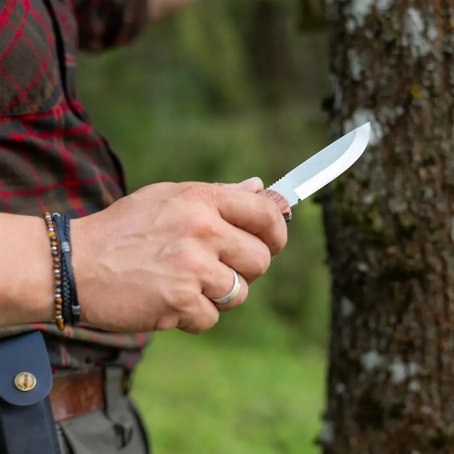 Eka Swede 10 knife comes with a Leather sheath that includes a belt loop.