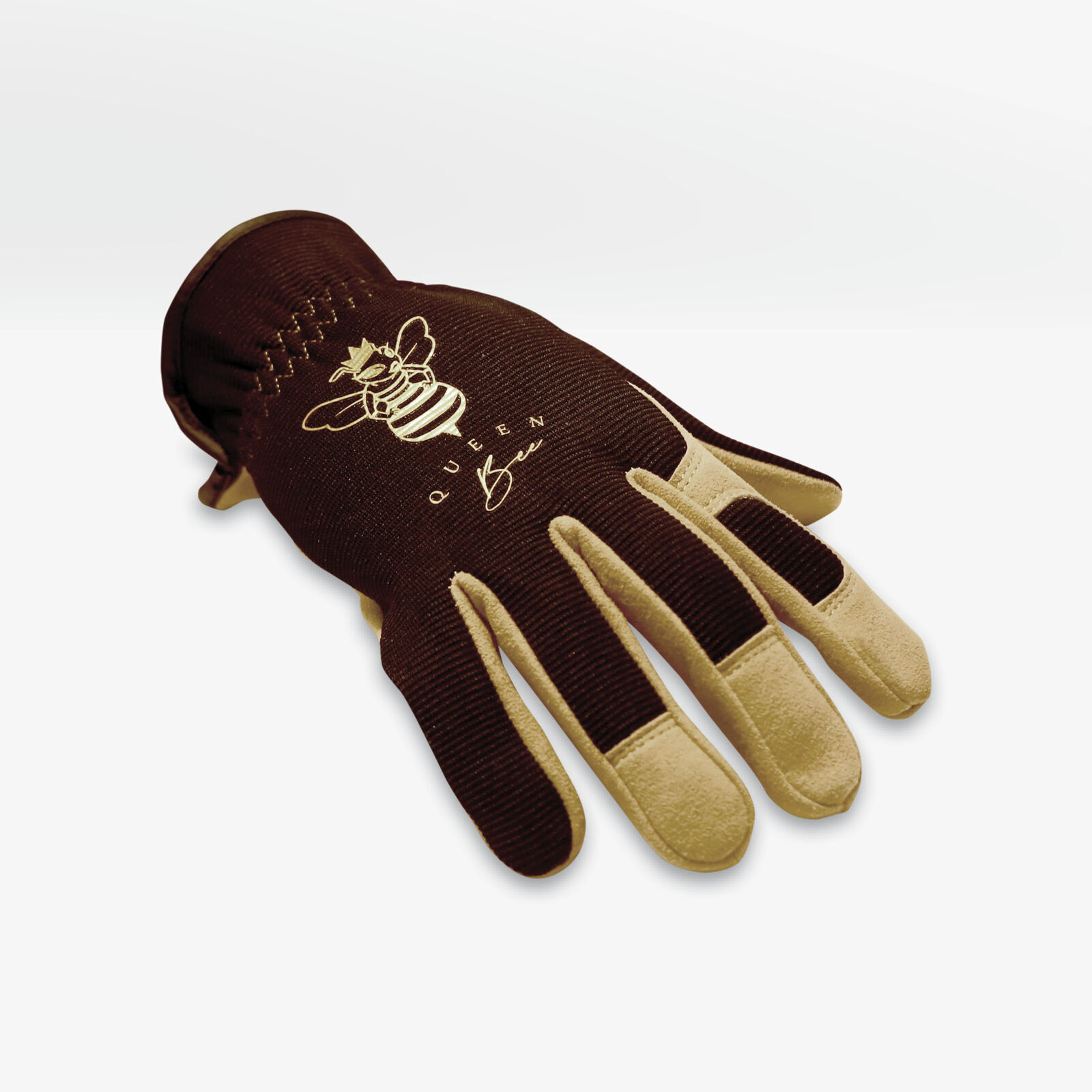 The Queen Bee glove has a superior A grade deer split leather palm with a nylon-lycra stretch fit back for breathability. It has a shirred elastic cuff for a better fit and keeping debris out along with pre curved finger design to minimize hand fatigue.