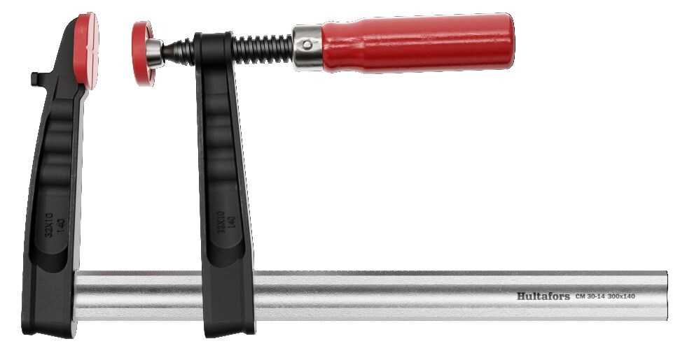 The CM is a German Made strong clamp with jaws made from impact resistant malleable castings attached to a wooden handle.