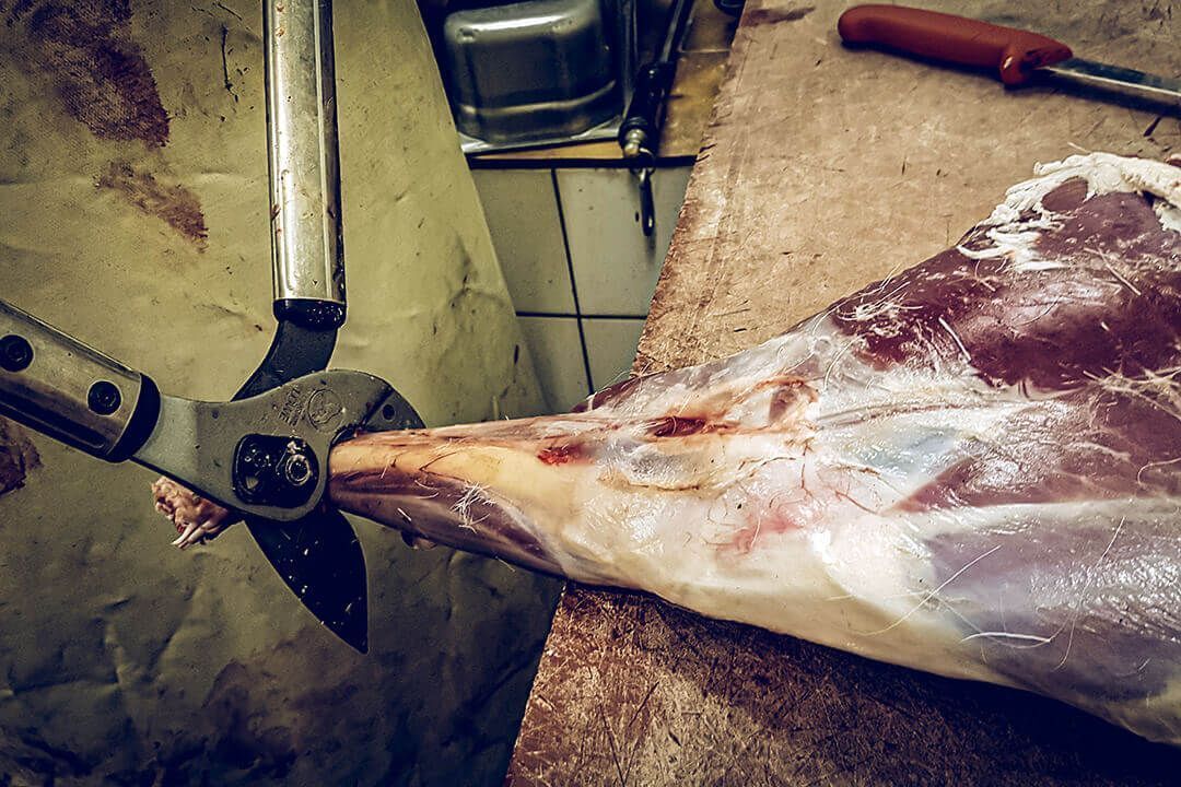 "POWER CUT" hunting shears - the ultimate tool for hunters to effortlessly break open, cut larger game without creating bone splinters. The design of the original LÖWE "POWER CUT" hunting shears makes them a unique hybrid shear with a large cutting capacity and optimized geometry. The Original LÖWE 22.150 are unsurpassed powerful tools for easy butchering and easy, clean dissection of game. Also ideal for light skinning. Smooth surfaces make cleaning easy. Equipped with with non-stick and corrosion-resistant blades for breaking and breaking bones and meat Original LÖWE 22.150. Assembled by hand.